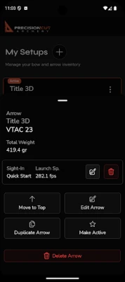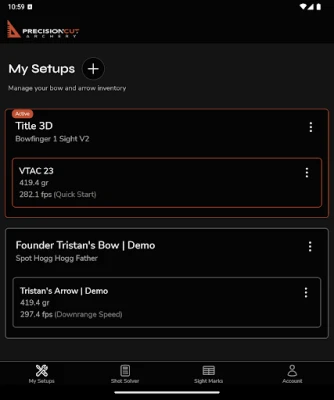Manage your bow and arrow setups with seamless two-way synchronization to your Precision Cut Archery web account.