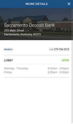 Contact Us You can contact us at 270-736-2212 if you have any questions about the Sacramento Deposit Bank Mobile App or the self-service registration process.