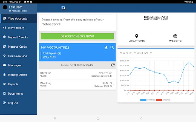 With Sacramento Deposit Bank’s Mobile Banking App you can safely and securely access your accounts anytime, anywhere. Our mobile app is FREE and allows you to: